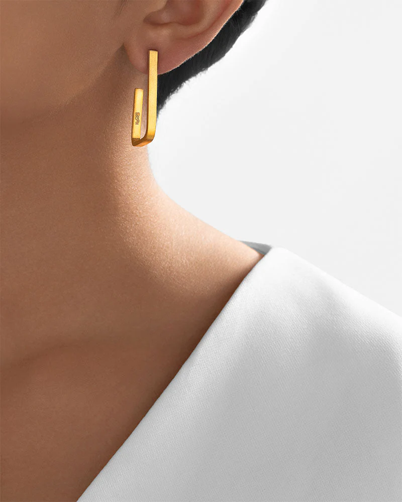 These delicate 24Kt gold Minimalist Triangle Earrings are a sleek and modern take on a classic hoop earring.