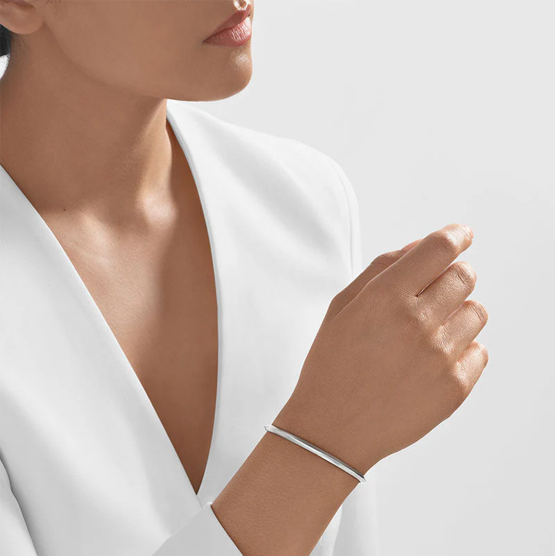 The subtle ridged detailing adds dimension to its sleek matte surface, while the adjustable design ensures a comfortable, personalized fit. Every curve and contour of this bangle celebrates Nebü’s dedication to real craftsmanship and sustainable luxury.